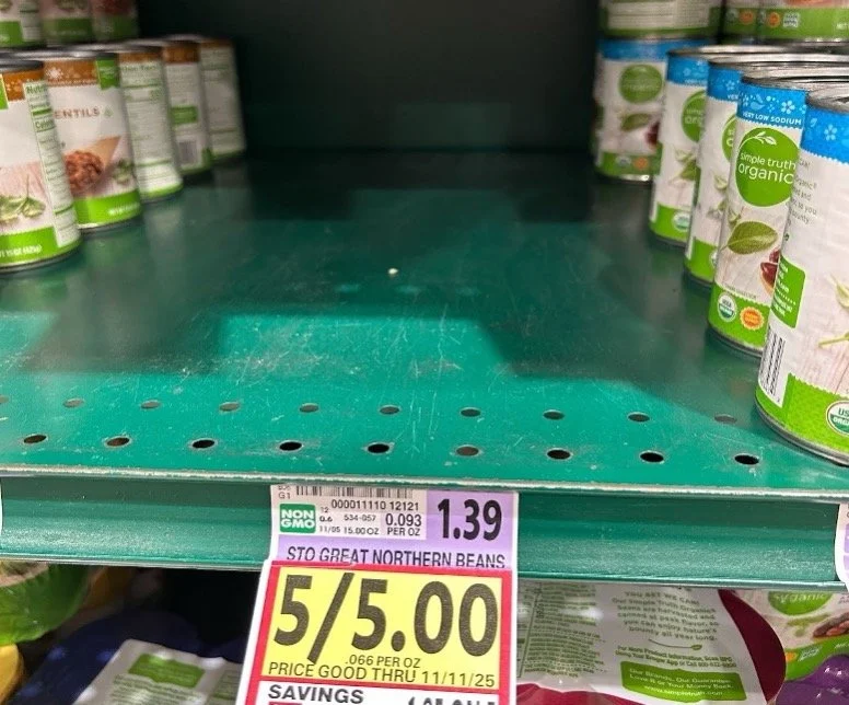 A store-brand can of beans, on sale for $1 a can, were all gone.